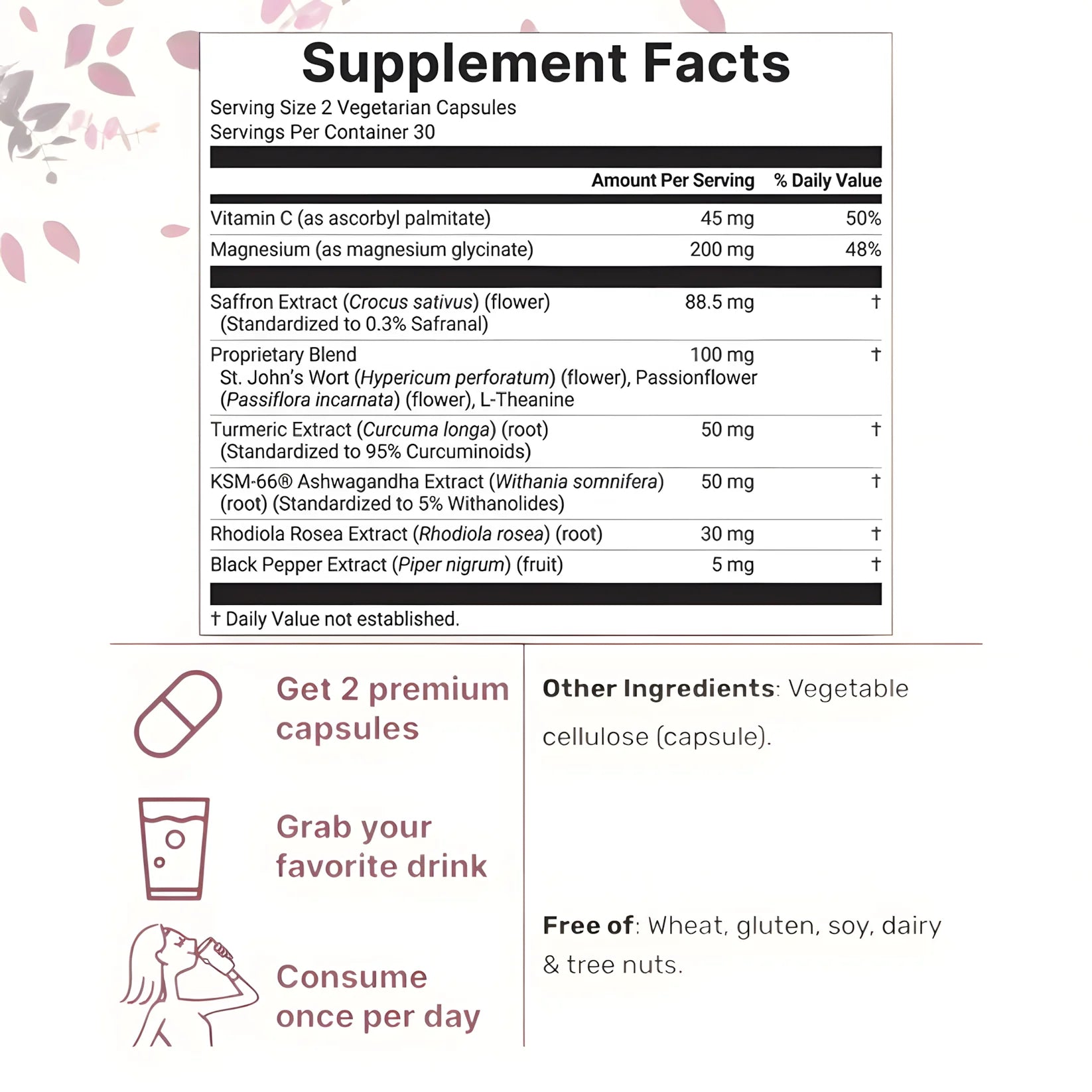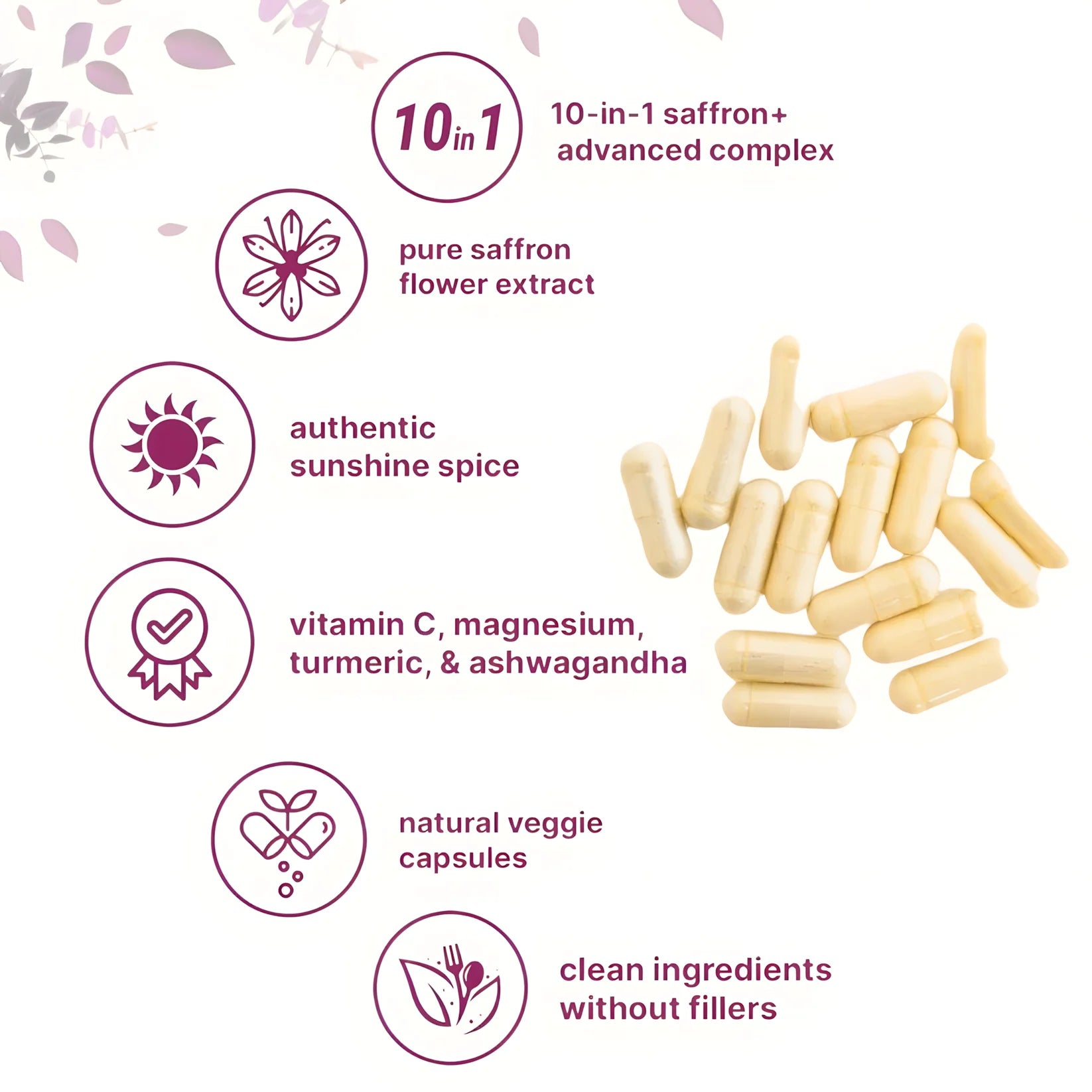Saffron is natural and generally safe, but it can interact with certain medications. To ensure safety, talk to your healthcare provider before adding Saffron+ Advanced to your routine if you’re on medication or have health conditions.